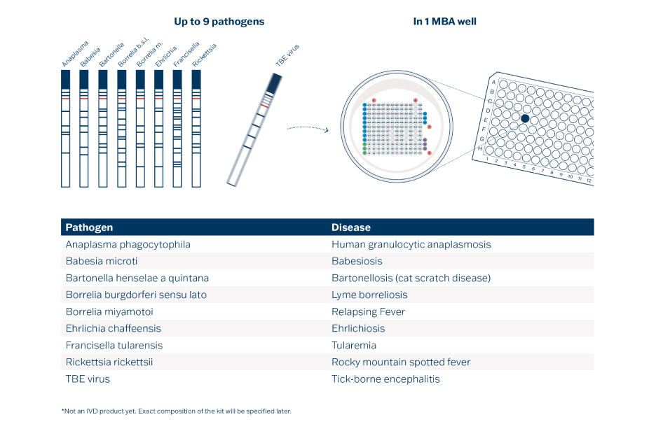 „Vývojové aktivity zahrnují také MBA Vector Transmitted Infections Panel pro vektorově přenosné infekce – inovativní diagnostické řešení určené k detekci širokého spektra těchto onemocnění. Pokročilý panel přesahuje rámec klíšťaty přenášených infekcí a zahrnuje i patogeny přenášené komáry, blechami, vešmi a dalším krevsajícím hmyzem,“