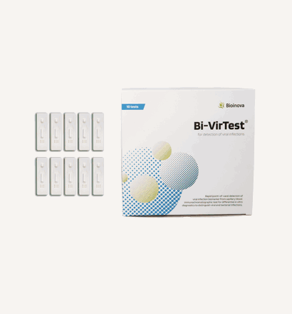 Rychlotest pokrývá svým měřícím rozsahem optimální diagnostické rozmezí pro diagnostiku virových infekcí a monitorování akutní fáze virové infekce. Vysoká citlivost i spolehlivost metody. Výsledky k dispozici do 15 minut - možnost okamžitě upravit terapii - korelace s metodou ELISA i Kleeya - kompatibilní se readerem Bi-Reader.