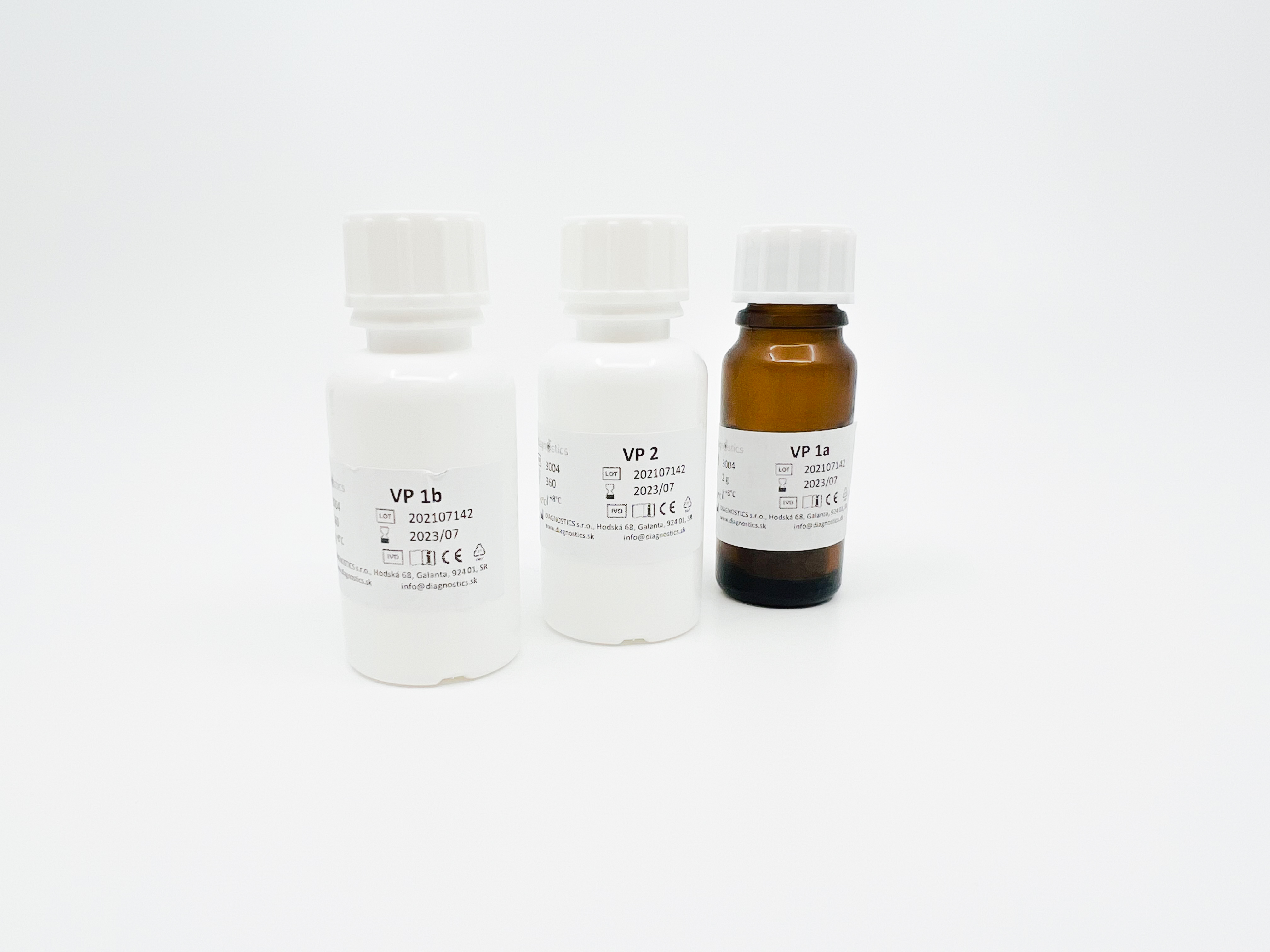 VP reagent je pomocným činidlem pro test VP (Voges - Proskauerův test). Činidlo prokazuje barevnou změnou tvorbu acetoinu u testů diagnostických souprav a VP proužku.