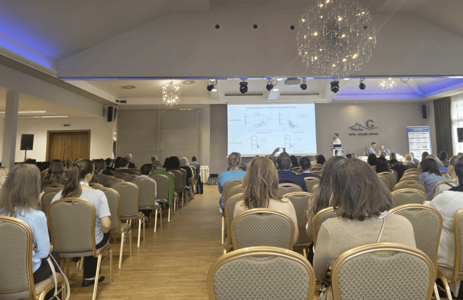 Jedním z bodů programu, který vzbudil zaslouženou pozornost, byla přednáška „Uromodulin jako unikátní biomarker funkce ledvin“, která proběhla v úterý 23. 9. v bloku B5–7. Úvodní slovo přednesl Mgr. Patrik Hrubčík z FN Olomouc, na něhož navázali kolegové z BioVendor Group – Eva Bače, Martina Hložánková a Jakub Sopoušek.